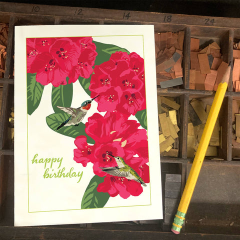 RHB-203 Hummingbirds & Rhododendron - Happy Birthday