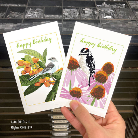 RHB-219 Downy Woodpecker & Coneflower - Happy Birthday