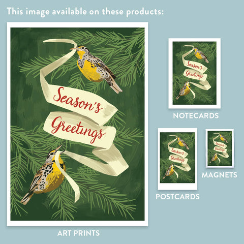 RHO-9107 Meadowlarks and Banner - Season's Greetings